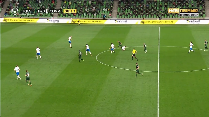 9’: Терехов сбивает Сперцяна в центре поля – повтор в трансляцию не попал, поэтому непонятно, сыграл тот в мяч или нет. Похоже, что сочинец заплел ноги Эдуарду, но Панин был рядом и фола не увидел.