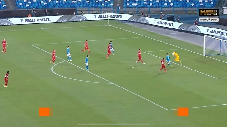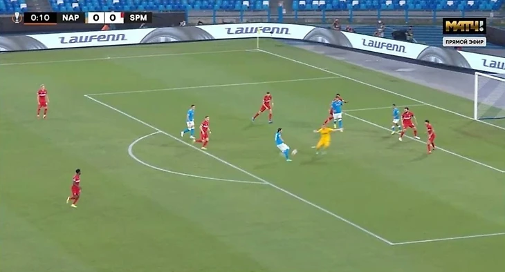 «Наполи» начал с центра поля, резво пошел в атаку и доставил мяч до Инсинье мяч на левом фланге – тот навесил в штрафную.