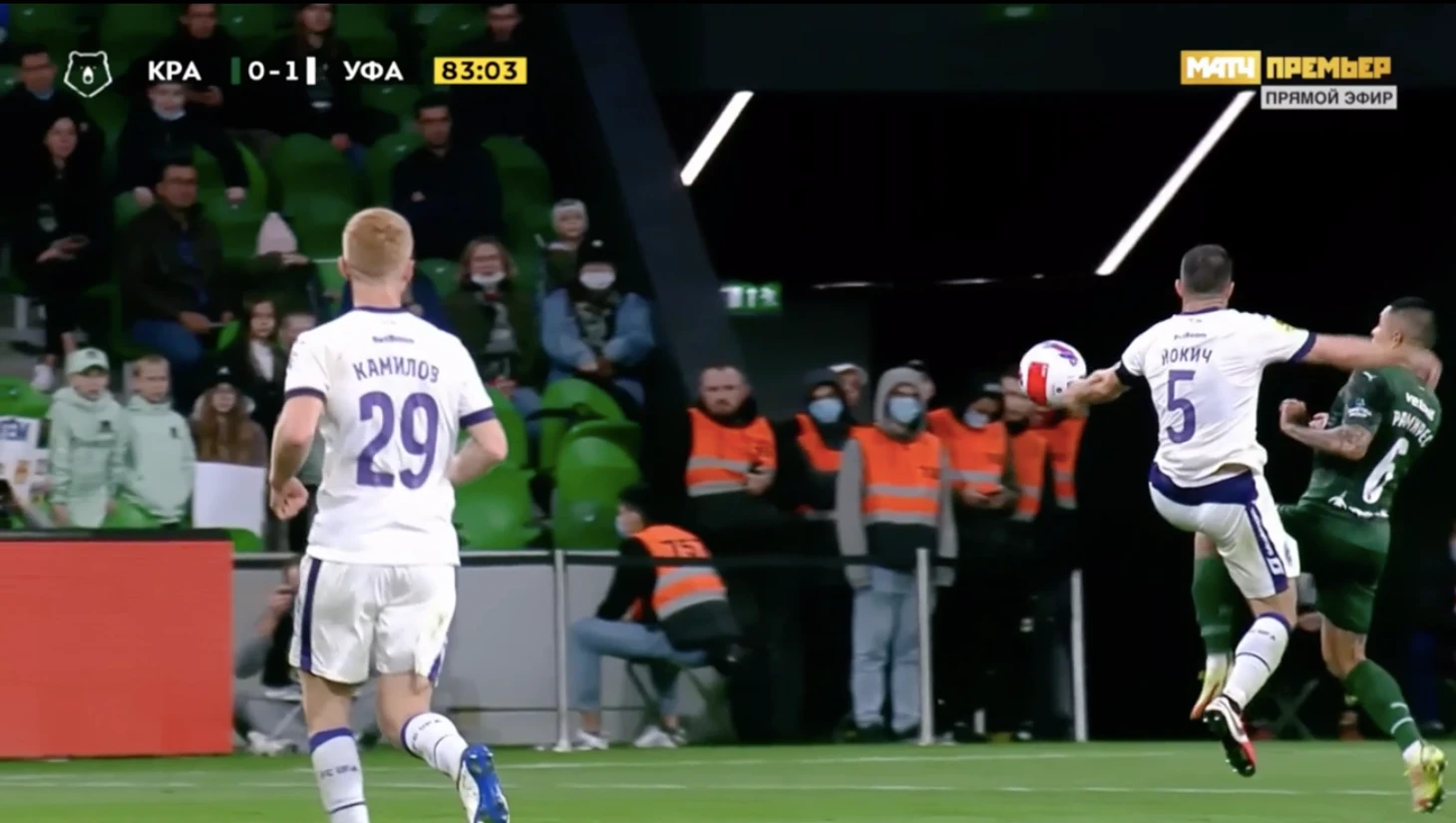 Арбитр матча Алексей Сухой не мог в деталях рассмотреть эпизод из-за позиции – но вмешались видеоассистенты Евгений Турбин и Илья Елеференко. ВАР посчитал, что левая рука Йокича находится в неестественном положении – Сухой согласился и назначил пенальти.