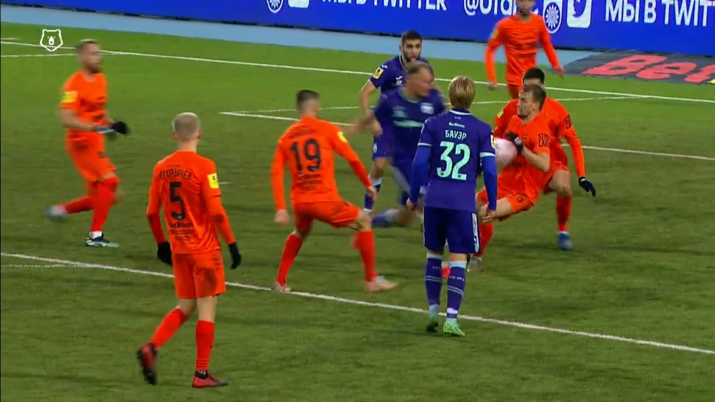 Мяч попал в руку екатеринбуржца Артема Мамина, но судья Виталий Мешков пенальти не назначил. Бурно эпизод не обсуждали, основные споры остались на поле.