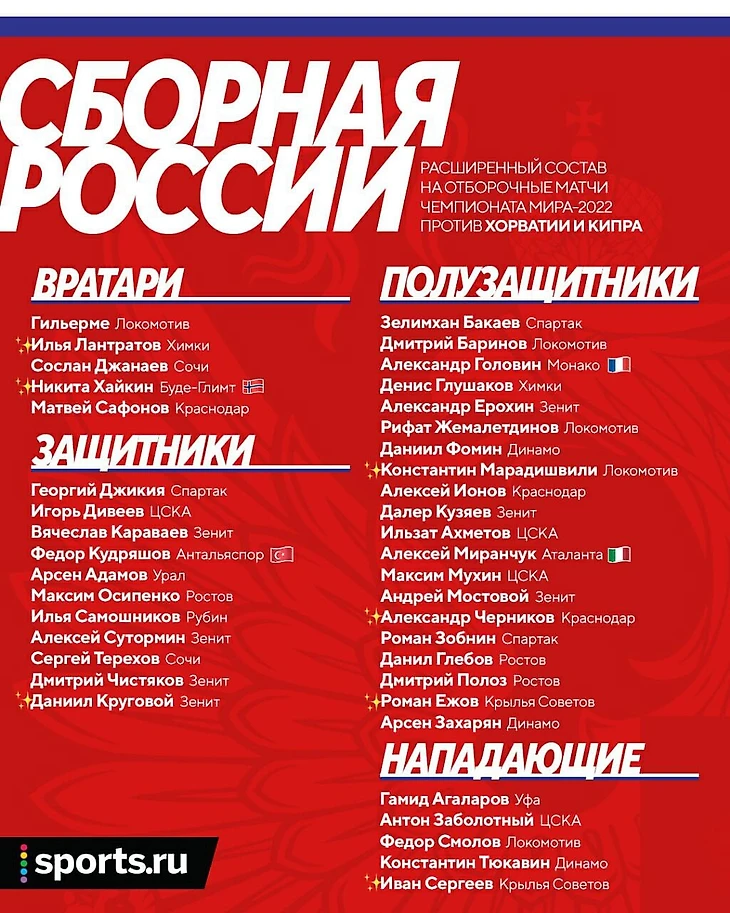 Сборная России назвала расширенный состав на матчи сборной в ноябре – с Кипром и Хорватией. Мы выделили главное.