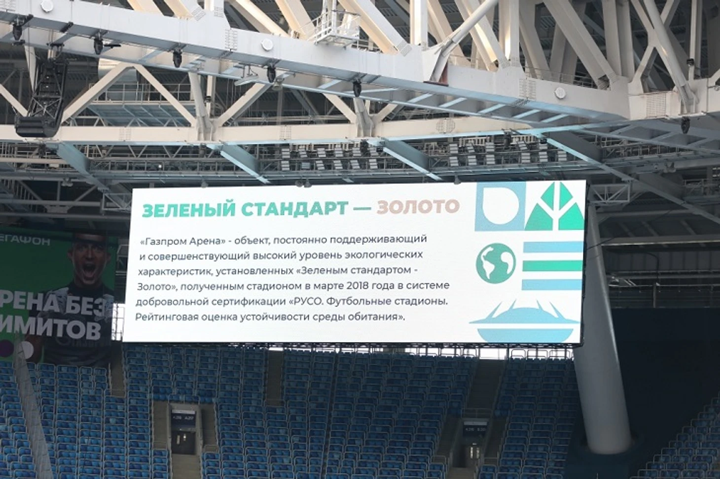 В этом году в Санкт-Петербурге год экологии. В середине октября «Зенит» рассказал о достижениях «Газпром Арены» в этой области: «Только в 2020-м более 50% отходов было отправлено на обезвреживание и вторичную переработку. На стадионе ведется работа по замене отработанных ртутных ламп, вместо которых используются безопасные для окружающей среды светодиодные источники, – всего было заменено 90% осветительных приборов. Стадион раздельно накапливает более 50 видов отходов, для которых организованы 8 мест временного накопления».