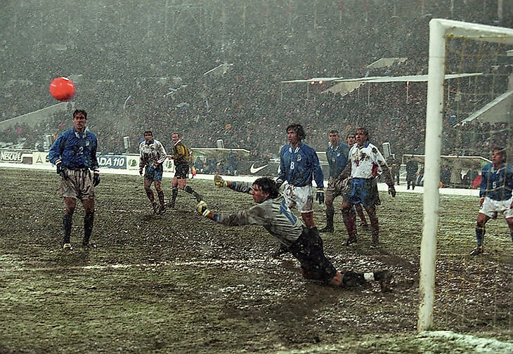 В 1997-м уступили Италии: мучались на заснеженном «Динамо», а судья не поставил два пенальти в ворота итальянцев