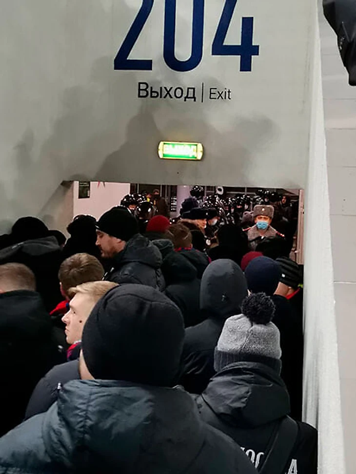 • У людей, которые находились на трибуне, не было возможности выйти в туалет, поесть и попить. Передать что-либо тем, кто находился, внутри, невозможно – запрещали сотрудники полиции. Журналисты, работавшие на матче, находились рядом. Корреспондент «Чемпионата» Андрей Панков в 23:30 сообщил, что сотрудников медиа оттеснили дальше от выхода с трибуны.