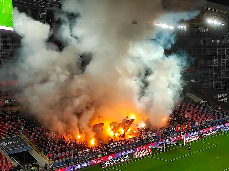 Меры связаны с пиротехническим шоу, которое фанаты ЦСКА устроили в концовке матча. Вот как это выглядело.
