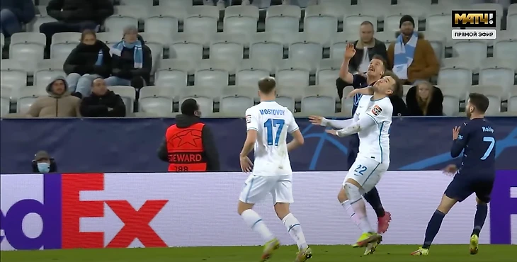 Недавно очень похожий момент мы разбирали после матча «Зенита» с «Мальме» – по сути, не сомневались, что тут тоже пенальти.
