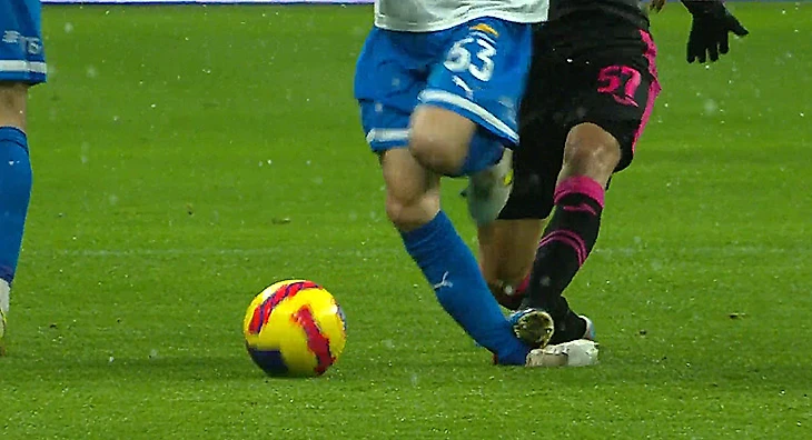 Уже на второй нападающий «Уфы» Вячеслав Кротов влетел шипами в ногу Себастьяна Шиманьски. Момент выглядел страшно – прямая красная не вызывает вопросов. Владислав Безбородов сначала дал предупреждение, но ВАР все исправил.