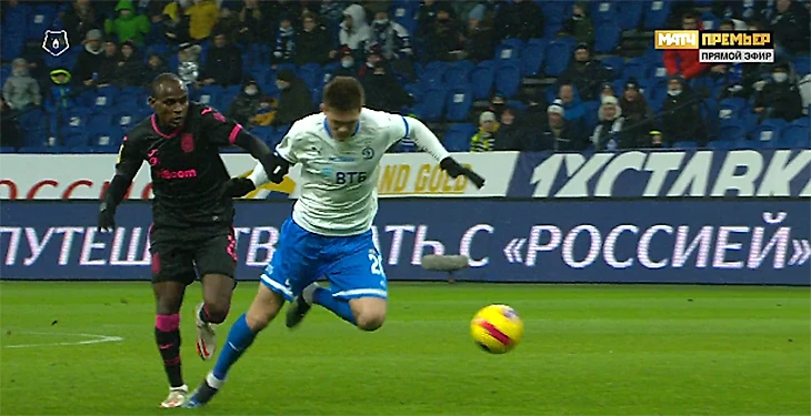 Ближе к концу тайм за фол последней надежды красную схватил еще и Эгаш Касинтура. Остановить набравшего огненную форму (и скорость сейчас) Грулева получилось только так.