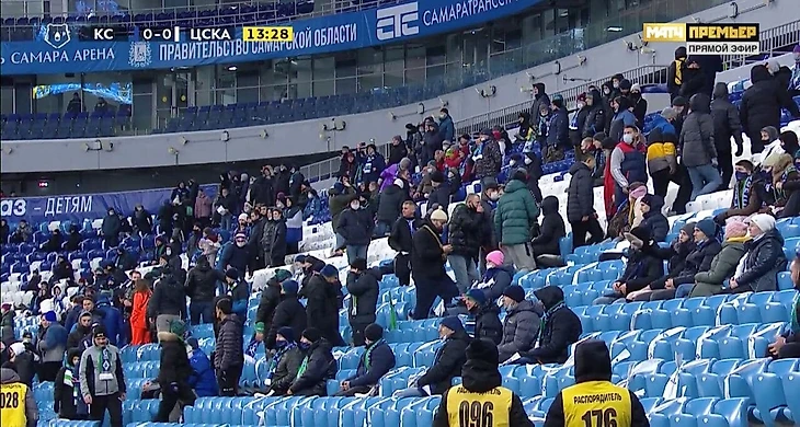 Александр Неценко: Дим, смотри. Болельщики «Крыльев Советов» покидают по договоренности свой фан-сектор. Они анонсировали свой уход на 14-й минуте этого матча. Всем известно, что именно от болельщиков ЦСКА была задумана акция среди фанатского движения. Эта ситуация была связана с тем, что происходило после игры ЦСКА – «Зенит». Использование пиротехники фанатами ЦСКА, последующие задержания. Этой историей заинтересовалась и РПЛ. 7 декабря будет проведено расширенное заседание комитета по безопасности и работе с болельщиками. Все эти решения будут уже рассмотрены КДК РФС 9 числа.