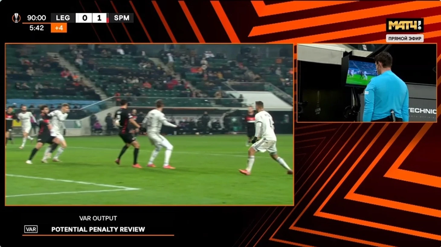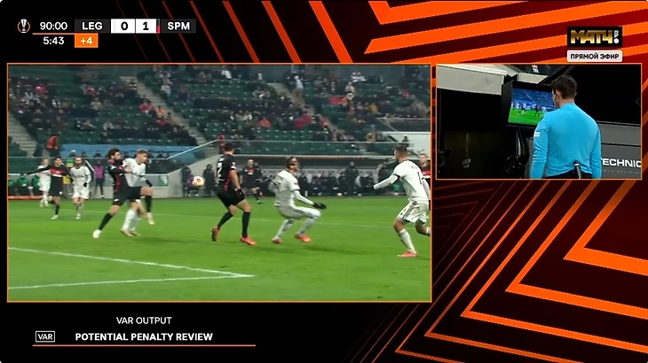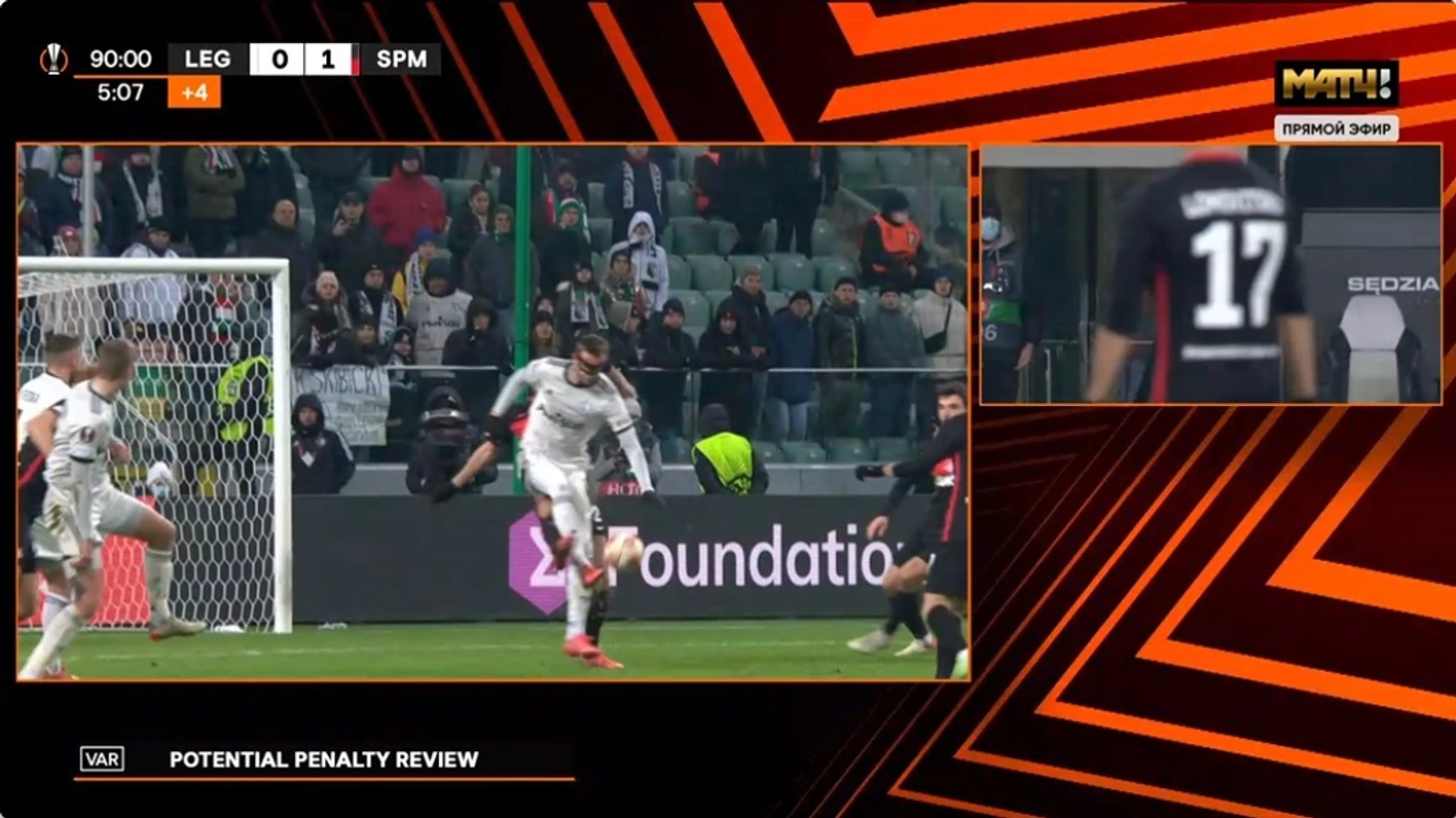 Словенец Матей Юг фола не увидел – да и в трансляции этот эпизод не сразу заметили, хотя игроки «Легии» сразу его окружили и начали что-то доказывать. Реф показал фол в другую сторону в следующем эпизоде, за нападение на вратаря, и пошел к центру поля.