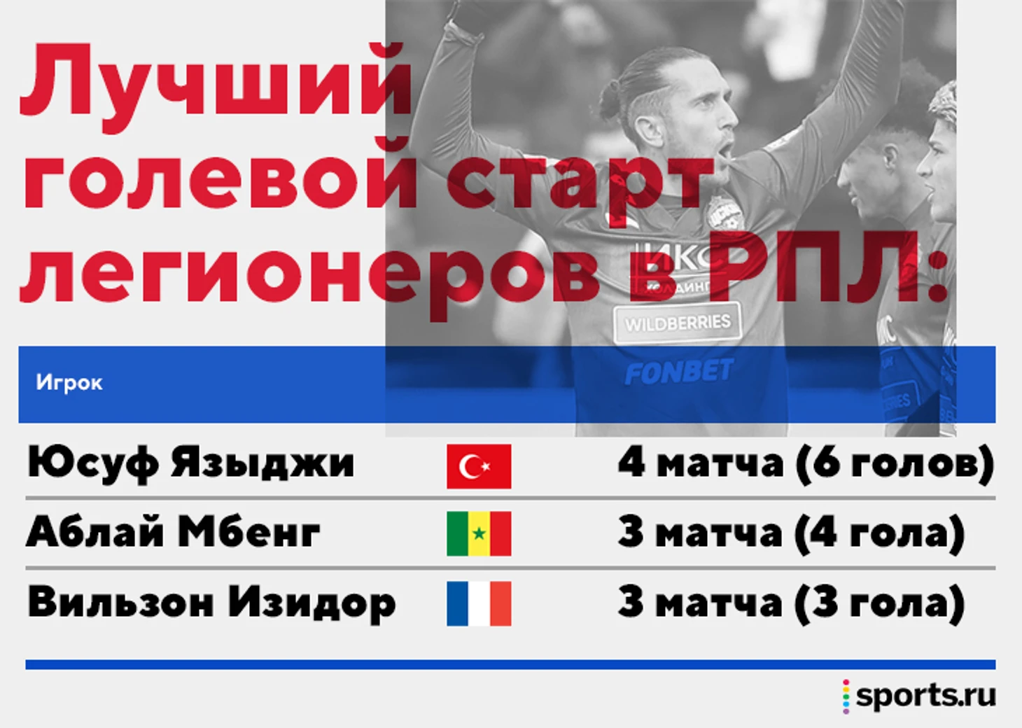 В масштабе лиги Языджи уже побил рекорд среди легионеров, который принадлежал Аблаю Мбенгу. Сенегалец забивал за «Ахмат» в первых трех матчах.
