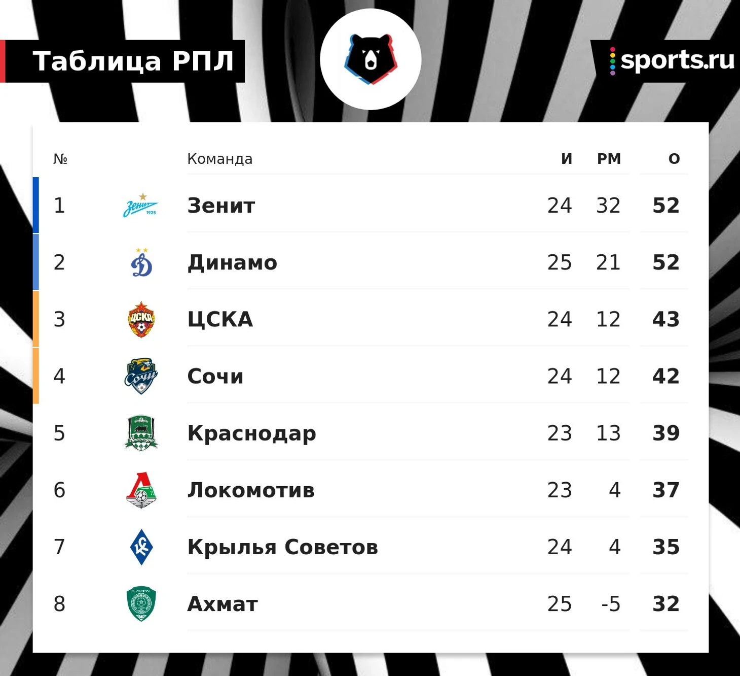 Московский клуб сравнялся с «Зенитом» по очкам – по 52, но у питерцев еще матч в запасе и преимущество по дополнительным показателям. В субботу команда Сергея Семака принимает «Урал».