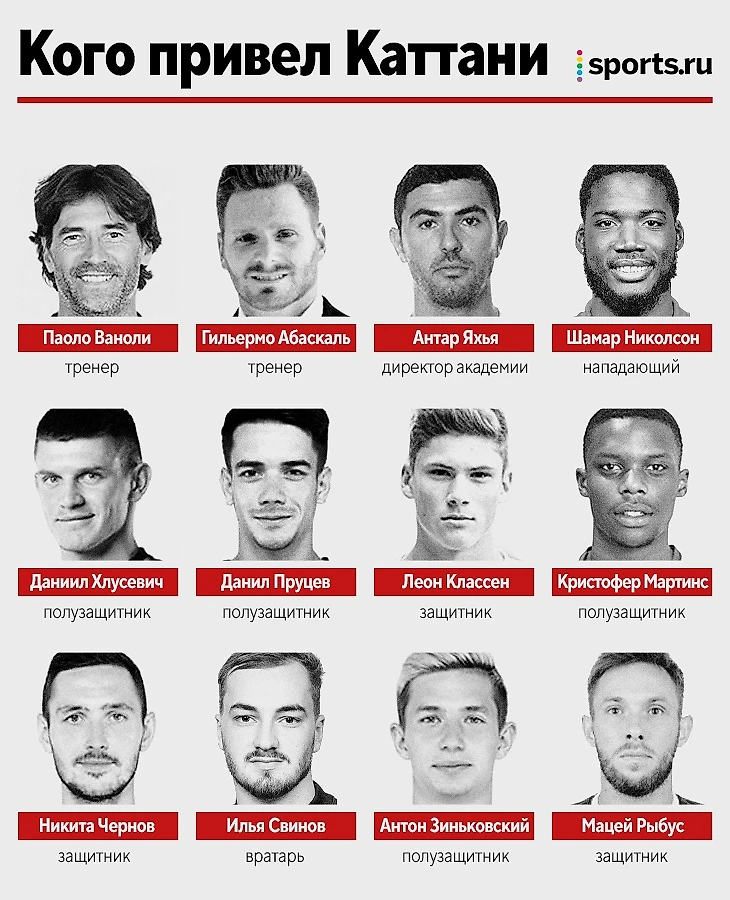 • Двух тренеров: Паоло Ваноли и Гильермо Абаскаль, оба оказались в «Спартаке» благодаря связям Каттани. Академию клуба возглавил тоже неочевидный герой – бывший игрок сборной Алжира Антар Яхья.