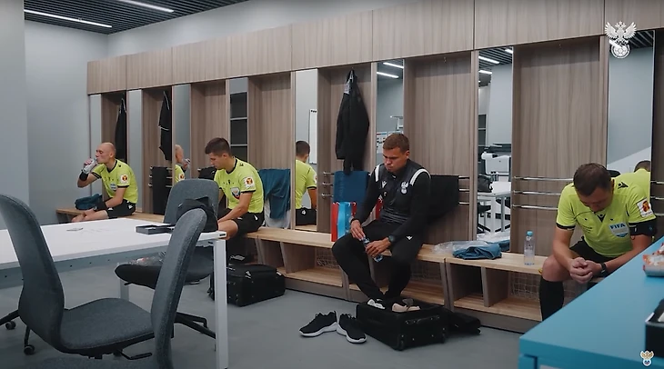 После прибытия на матч судьи отправляются в раздевалку. Внутри минимум разговоров – максимальная концентрация.