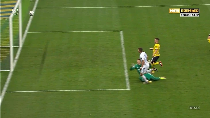 Дмитрий Воробьев вышел на ворота Сергея Песьяков один на один под углом и пробил до сближения с кипером – мяч полетел сильно выше ворот, затем Песьяков зацепил форварда, тот упал и покатился по газону. Казарцев показал от ворот – но работавший на ВАР Павел Шадыханов засомневался в его решении и позвал главного арбитра к монитору.