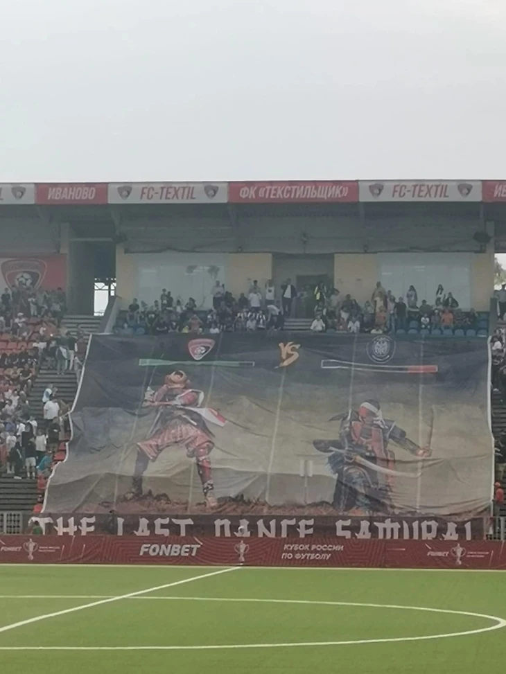 Но в целом болельщики отнеслись к Кубку серьезно – полный стадион, все билеты выкуплены (хотя это был будний день). На трибунах появился мощный баннер с подписью «Последний танец самурая» и изображением битвы двух персонажей, которые представляют команды.