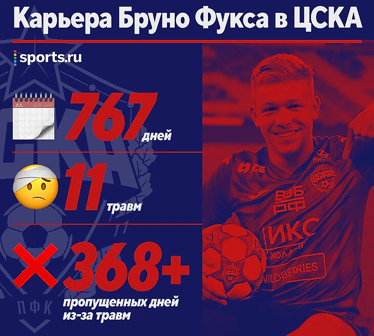До рекордсменов по травматичности Фуксу, конечно, пока далеко – например, Абу Диаби за карьеру пропустил 1747 дней. Но все равно то, как к бразильцу в ЦСКА липнут травмы – невероятно.