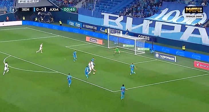 Перед первым голом игроки «Ахмата» даже столкнулись в штрафной «Зенита» – и все равно их не остановили.