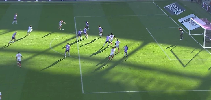 На прошлой неделе Саше удался очень похожий гол против «Анже» – там и позиция была схожа (перед штрафной чуть левее центра), и удар так же идеально полетел в дальнюю девятку.