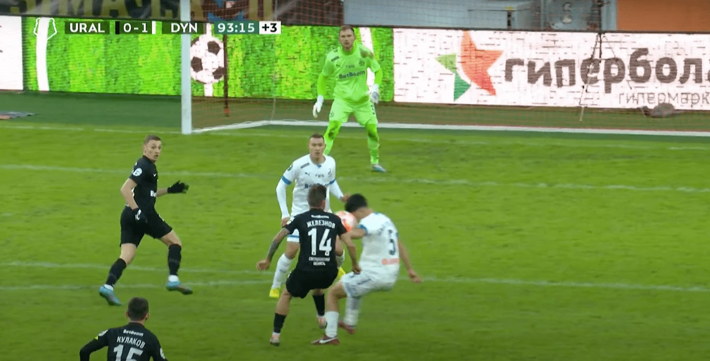 На четвертой компенсированной минуте при счете 1:0 в пользу «Динамо» защитник Милан Майсторович недалеко от штрафной в борьбе выбил мяч. Игроки «Урала» увидели прием рукой, а тренер на нервах из-за результата атаковал судью.