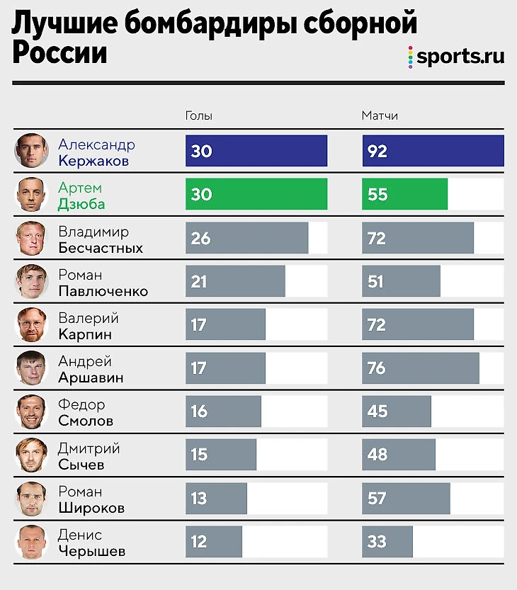 Про сборную России форвард тоже не забыл. Артем давно хочет вернуться: до абсолютного рекорда остался один гол – пока у них с Кержаковым ровно по 30.