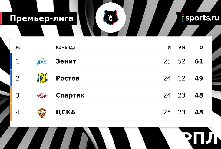 ЦСКА продолжает гнаться за «Спартаком» и «Ростовом». Серьезная плотность.