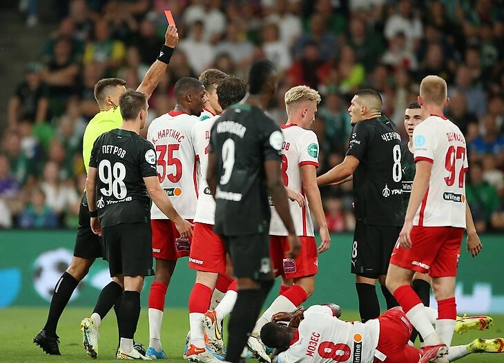 • В первом туре РПЛ «Спартак» сыграл на выезде вничью с «Ахматом» (1:1). Москвичи больше тайма играли в меньшинстве после удаления защитника Мачея Рыбуса, он получил две желтые от судьи Владислава Безбородова.