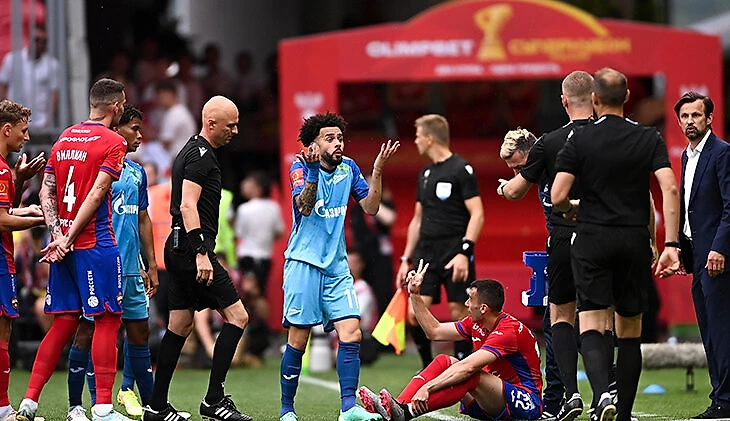 Чалов толкнул врача петербургского клуба и получил желтую. У «Зенита» предупреждение выписали Клаудиньо.