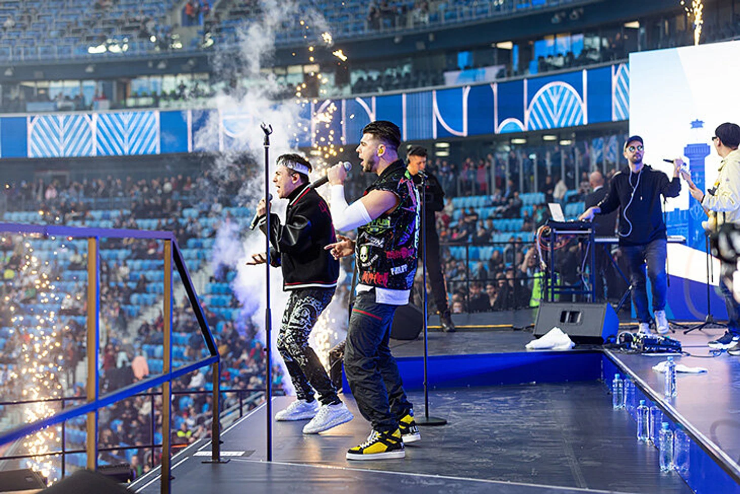 Первой на сцене выступила группа Gayazovs Brothers – перед началом игры с «Уралом». Тогда подвели итоги розыгрыша среди оформивших Fan ID, победитель получил новую LADA Granta.