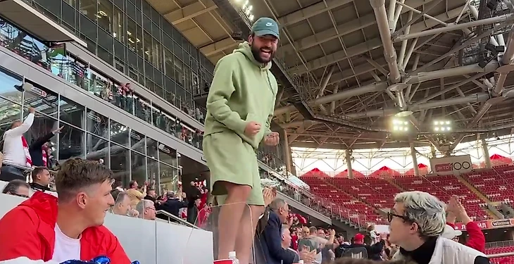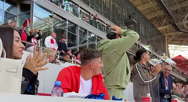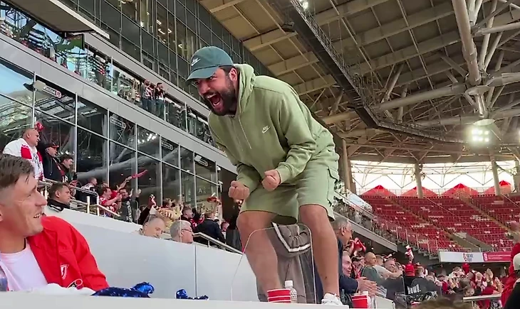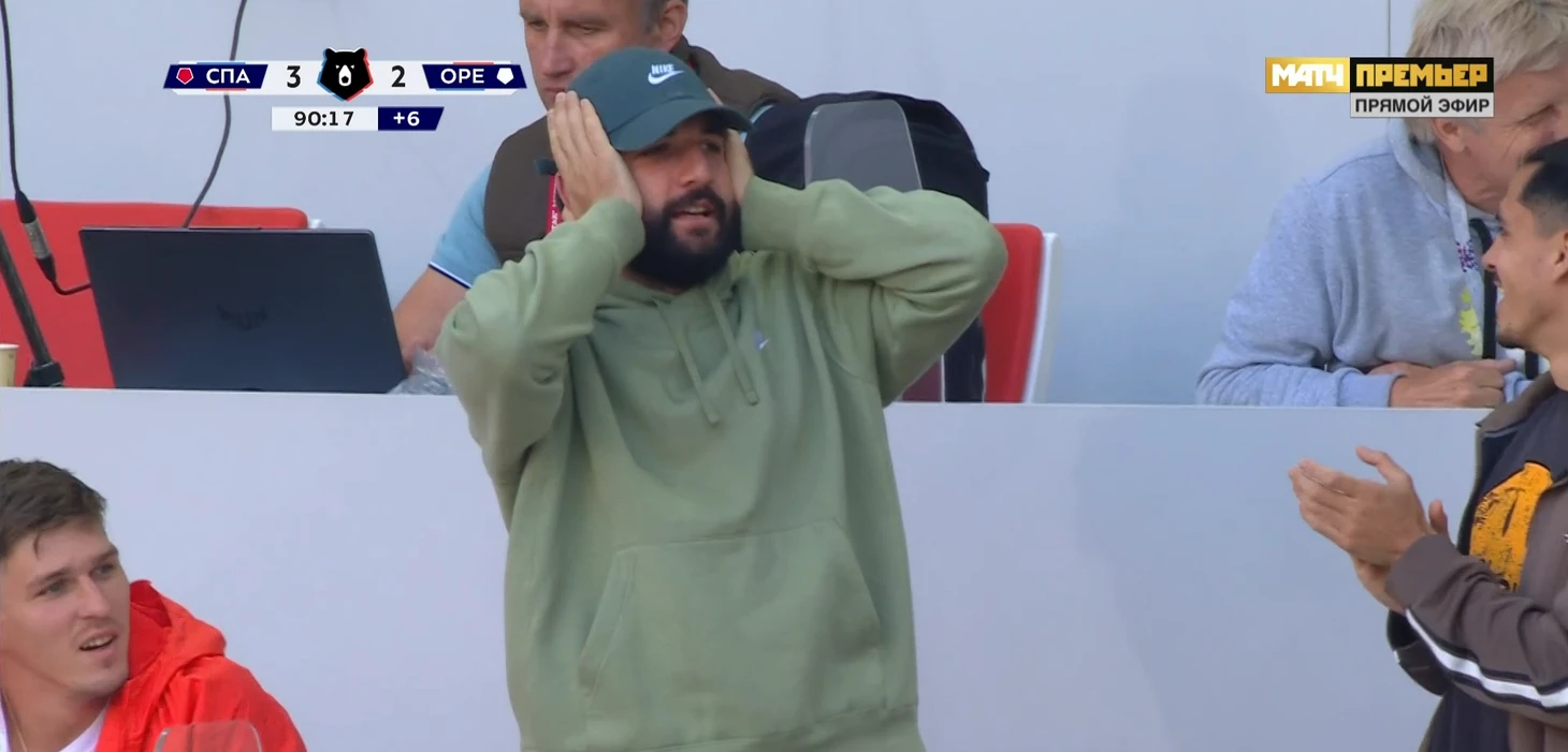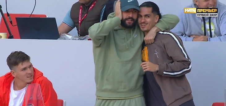 Александр Соболев и Георгий Джикия пропускали матч из-за дисквалификации. Но капитан все равно отреагировал очень громко – забрался на стол и кричал!