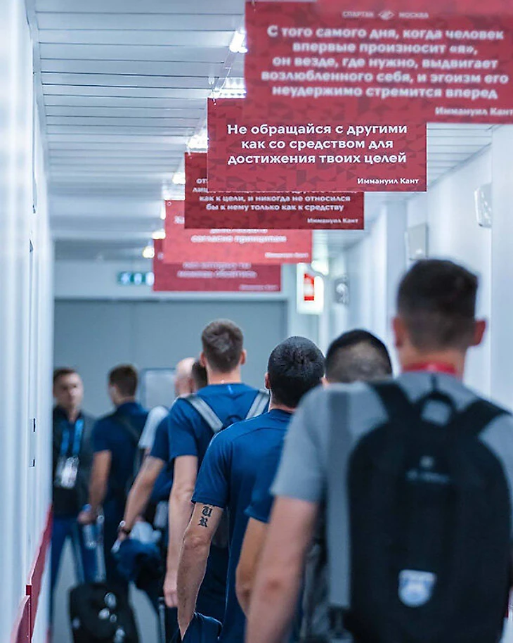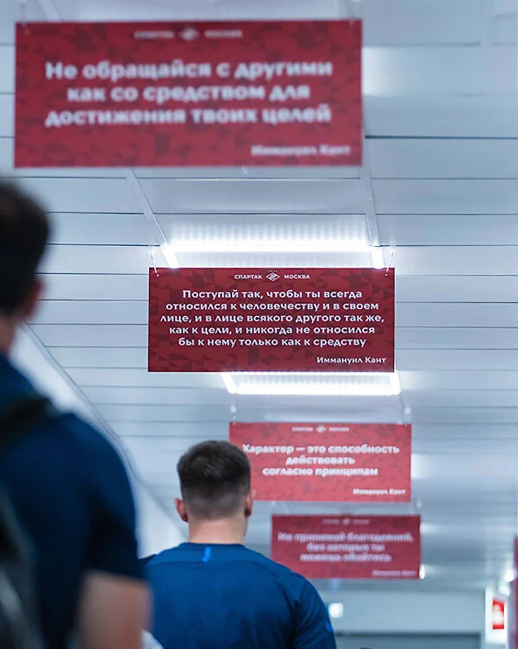 Перед матчем в подтрибунке «Открытие Арены» вывесили плакаты с цитатами философа Иммануила Канта, родившегося и умершего в Кенигсберге – современном Калининграде.