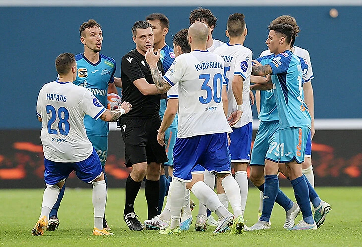 Игорь Федотов согласен с коллегой: «Находясь в идеальной позиции, Шадыханов пропускает фол со стороны игрока «Факела» – фол по неосторожности, а уже после мяч попал в отставленную руку игроку «Зенита».