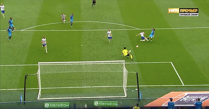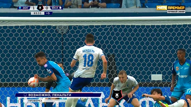 Но был нюанс, который сработал в пользу «Зенита». Арбитры усмотрели нарушение в атаке – похоже, это Максимов сфолил на Васильеве, а не наоборот. Шадыханов сходил к монитору и назначил штрафной в пользу «Зенита».