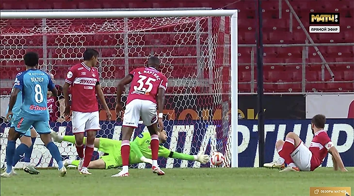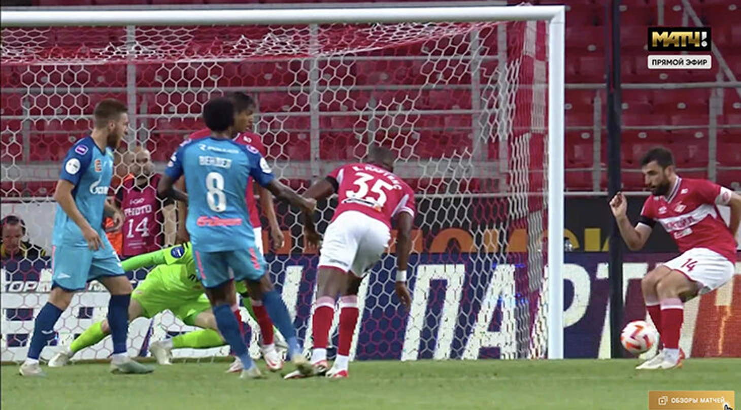 Нелепый первый гол «Зенита» «Спартаку»: мяч шел мимо, Джикия неловко подправил в свои