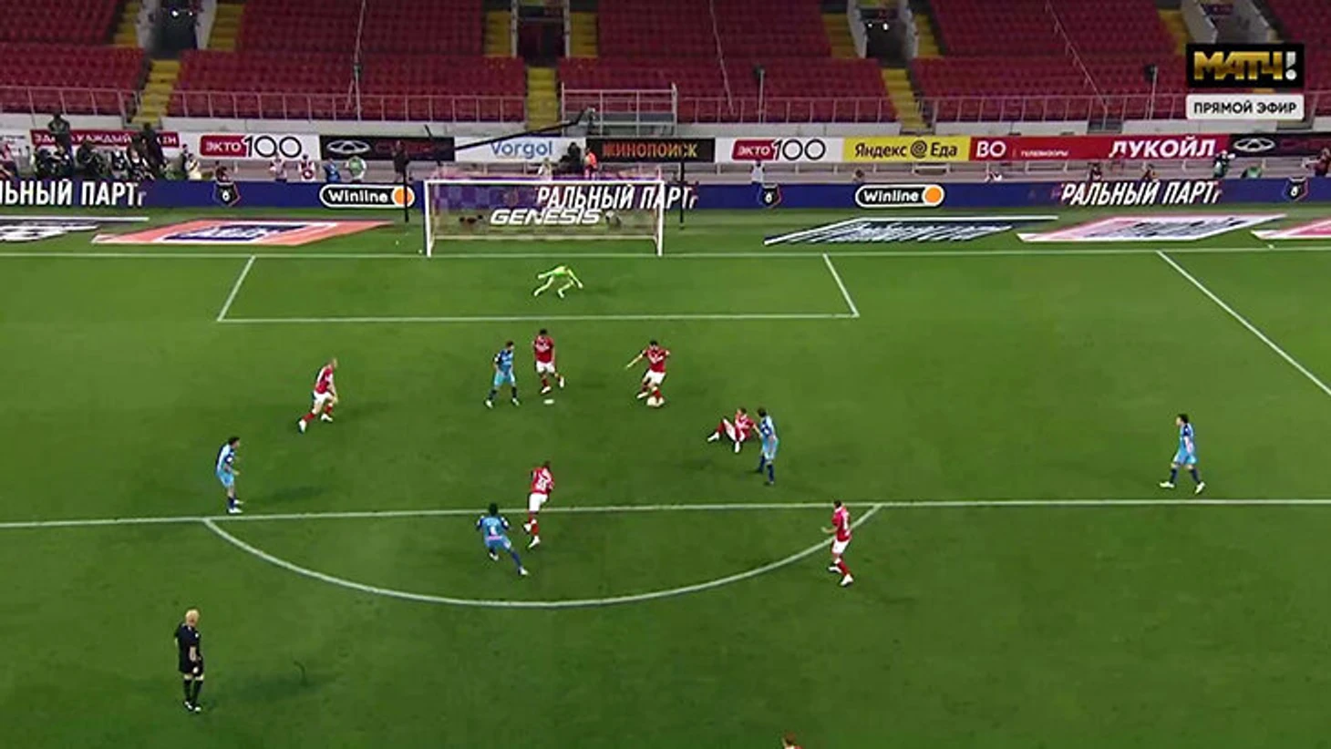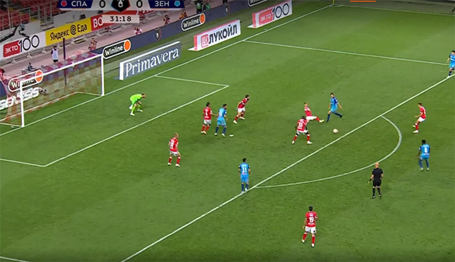 Казалось, спартаковцы отбились после атаки гостей и попытались вынести мяч из штрафной. Но Рябчук попал прямо на ногу свободному Венделу.