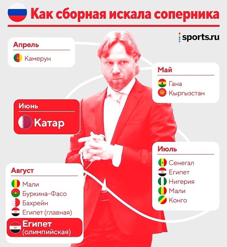 Команда не собиралась почти полгода – в том числе из-за того, что потенциальные спарринг-партнеры постоянно слетали. Прежде чем остановиться на Египте и Катаре, перебрали 14 вариантов.