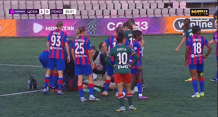 Пугающий инцидент в матче женской Суперлиги – полузащитница «Локомотива» Полина Юкляева потеряла сознание после столкновения с защитницей ЦСКА Юлией Плешковой.