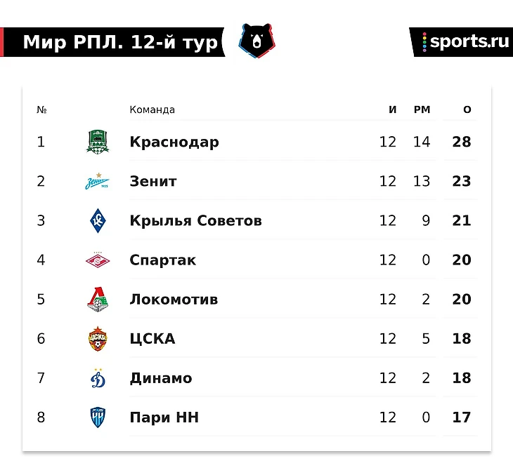 «Зенит» только что вышел на второе место: отыграли у «Краснодара» два очка, теперь между ними пять. Обошли как раз «Крылья» благодаря очкой победе.