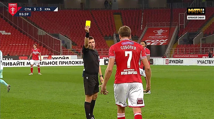 Соболев спорил. Но кроме желтой карточки ничего не получил. «2 касания😂», – так Соболев отреагировал на отмену в телеграме уже после матча.