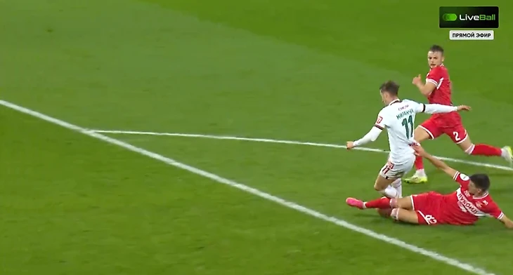До пенальти Миранчук добежать не успел, а вот на фол последней надежды Хлусевич наиграл.