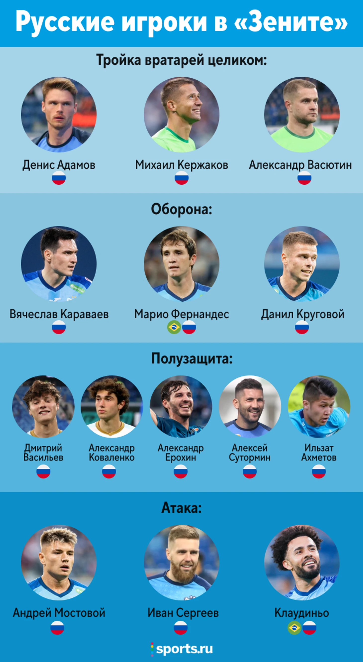 Сейчас по регламенту в заявке могут находиться не более 13 легионеров, а также не менее 12 доморощенных футболистов, четверо из которых – воспитанники клуба, а восемь – воспитанники российского футбола. Российских паспортов в «Зените» сейчас 14, доморощенных – 12.
