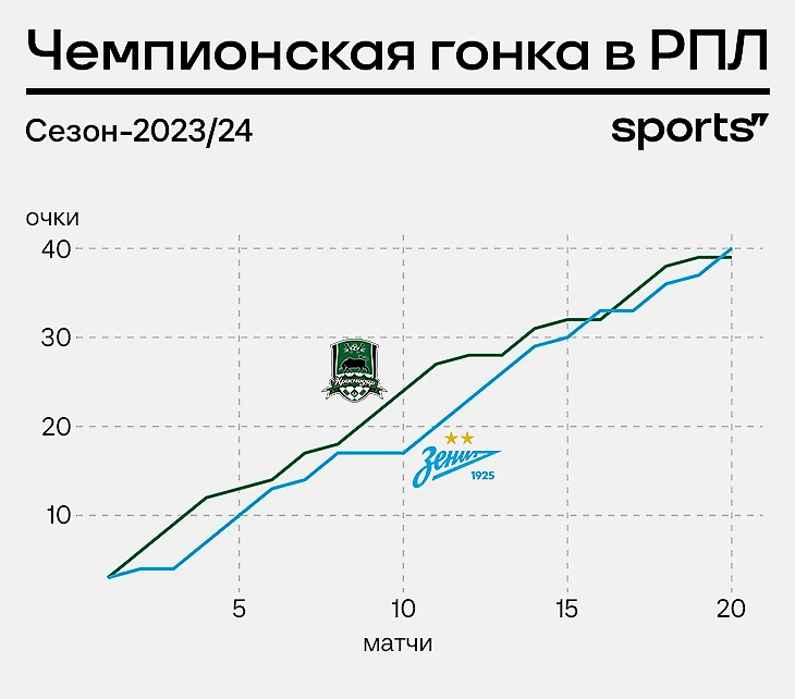 В прошлый раз отобрали лидерство после 16-го тура: победили 3:0 «Сочи», а «Краснодар» влетел 1:3 «Уралу». В теории «Зенит» мог обходить конкурента чуть раньше, но за пару недель до этого команды сыграли 1:1 на «Газпром-Арене».