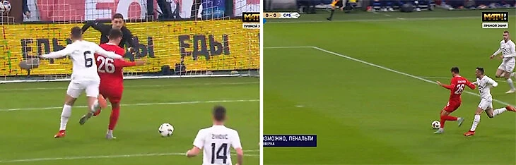 Офсайда не было, так что фол в штрафной остался легитимным, и судья активировал все меры наказания.