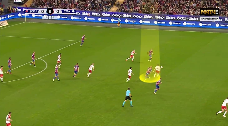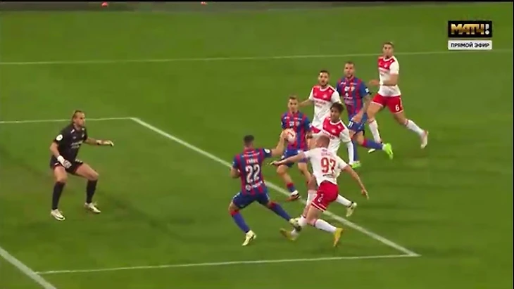 Похоже, он хотел наказать Никиту Чернова: в ходе этой же атаки ЦСКА он грубо сыграл в центре поля, но игру не остановили.
