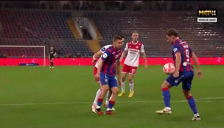 2. Я вижу, что футболист ЦСКА играет рукой.