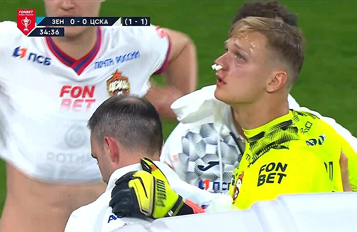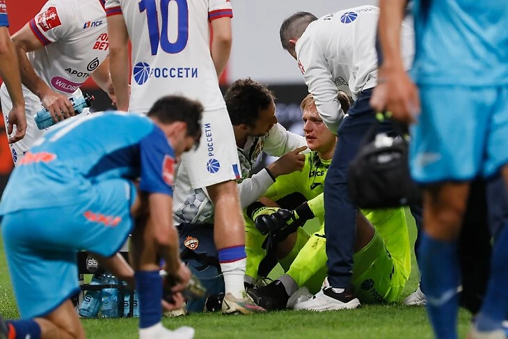 Тороп продолжить не смог, ЦСКА пришлось применить замену по подозрению на повреждение головы.