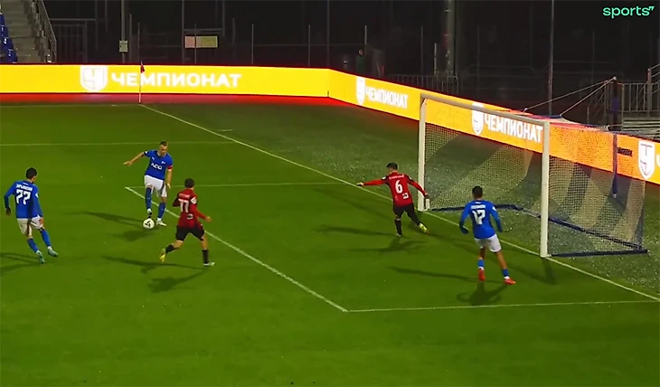 Долгов принял мяч под правую, оценил ситуацию – и просто покатил мимо.