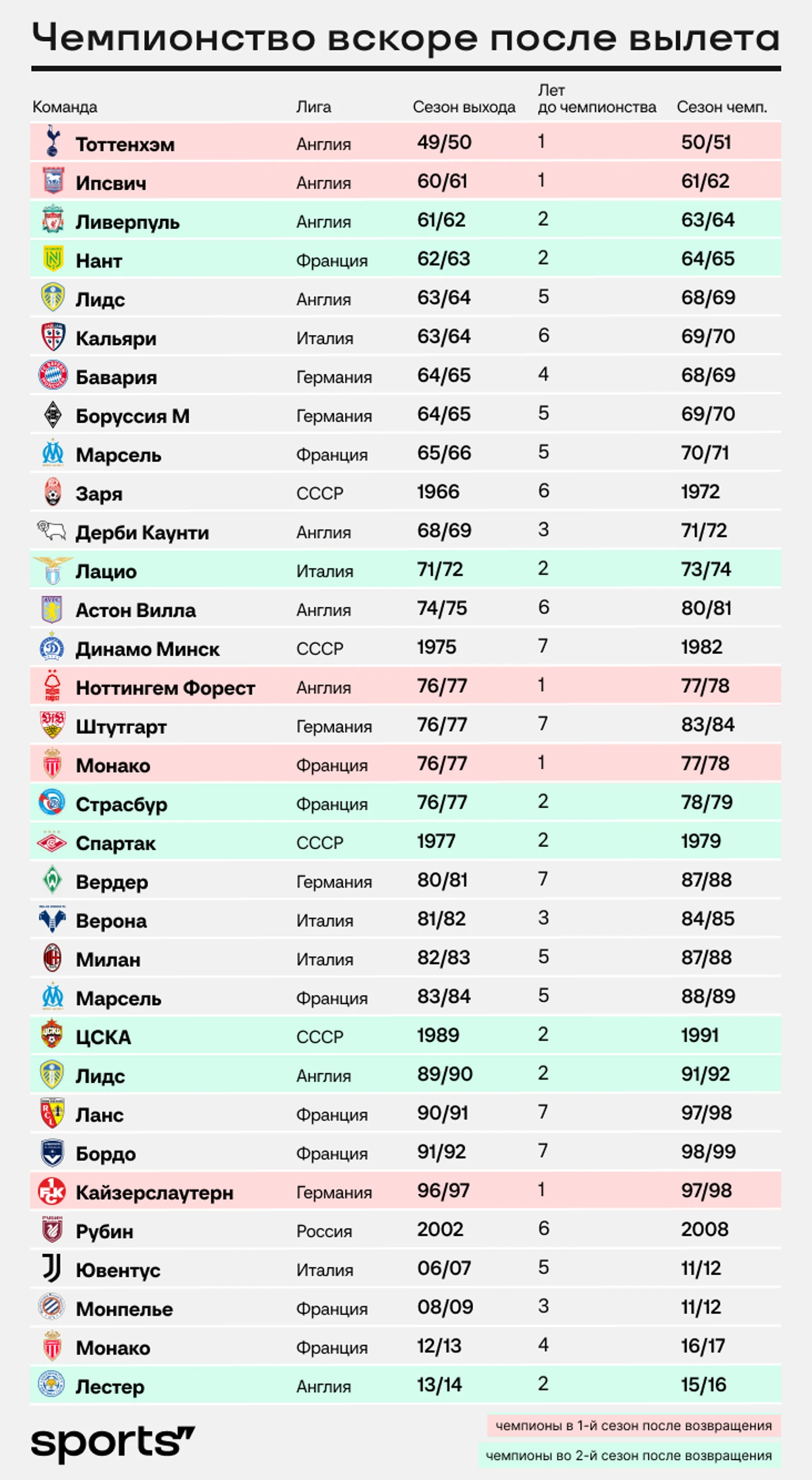 «Динамо» идет к чемпионству после очищения вылетом. А много таких примеров в топ-лигах?