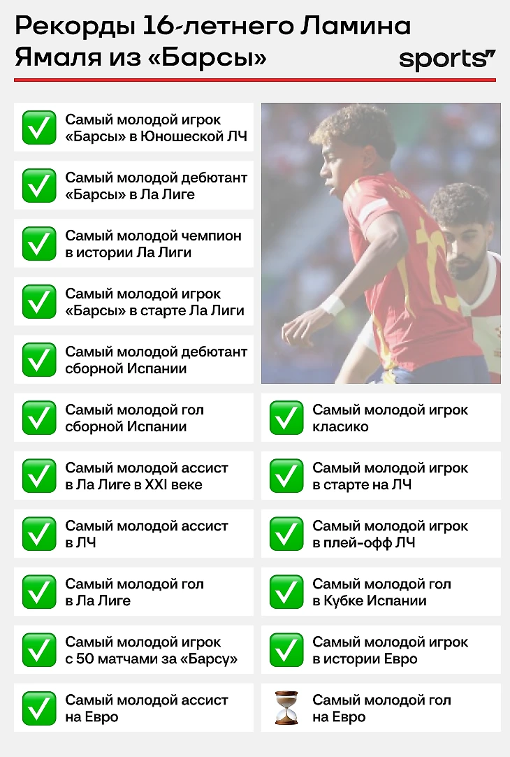 Все рекорды Ямаля: теперь он самый молодой игрок и ассистент в истории Евро