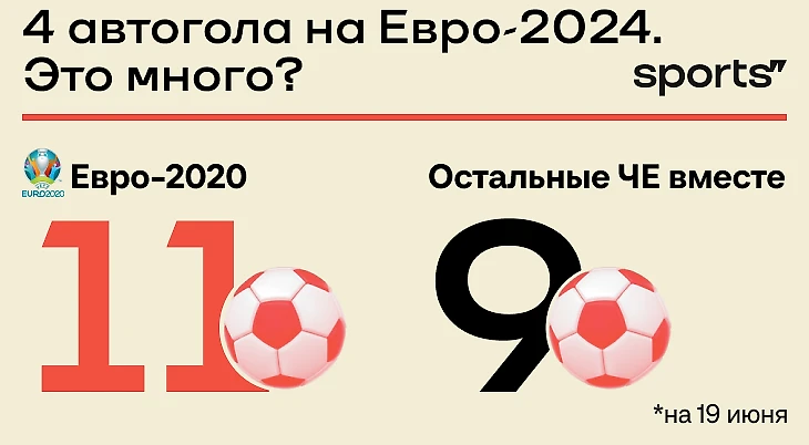 ● На Евро-2020 автоголов было больше (11), чем у двух лучших бомбардиров вместе взятых: Роналду и Патрик Шик забили тогда по пять.